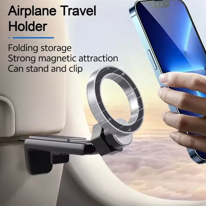 Suporte magnético para grudar celular no avião.